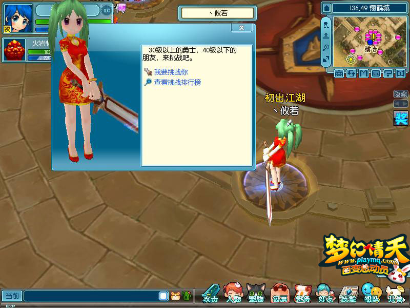 翔鹤城挑战榜样 当玩家到达翔鹤城时,可以碰到更多的雕像可以挑战,从最低级的“初出江湖”开始,到最高级的“泰山北斗”。 “初出江湖”要求挑战玩家等级30级——40级以下, “颇具潜力”要求挑战玩家等级40级——50级以下, “初见锋芒”要求挑战玩家等级50级——60级以下, “小有名气”要求挑战玩家等级60级——70级以下, “声名鹊起”要求挑战玩家等级70级——80级以下, “锋芒毕露”要求挑战玩家等级80级——90级以下, “泰山北斗”要求挑战玩家等级90级——100级以下, 雷台管理员雷西语:雕像都是当世最强的英雄化身,要想证明自己,就要逐个挑战他们。挑战雕像都有不同的气势要求,亲爱的勇士们,快快增长你们气势,向你们的榜样发起挑战吧!勇士们请注意哦,只有在游戏的1线内,才可以挑战雕像哟! CCTV力荐 可以骑宠飞行的回合网游《梦幻情天》“百变总动员”新版火爆上线! Q版变身回合网游《梦幻情天》终极内测已经震撼开启! 百种宠物,百种变身,个性时装,人人都有,永久免费! 更多内容请关注 《梦幻情天》官方网站:http://www.playmq.com/ 《梦幻情天》游戏下载:http://www.playmq.com/mhqt/download/ |